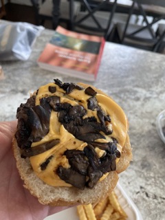 I said that I'd give it a second try and today I did just that. Today I ordered a Mushroom Burger with French fries and a slice of cake on the side. Again, absolutely nothing negative to say about the