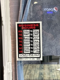 Brand new local place in Marcellus. Advertised fried chicken and ribs and collard greens as main draw. Sadly the refrigeration was down so no fried chicken or mac and cheese. All he had left was some